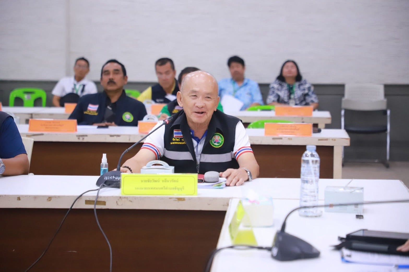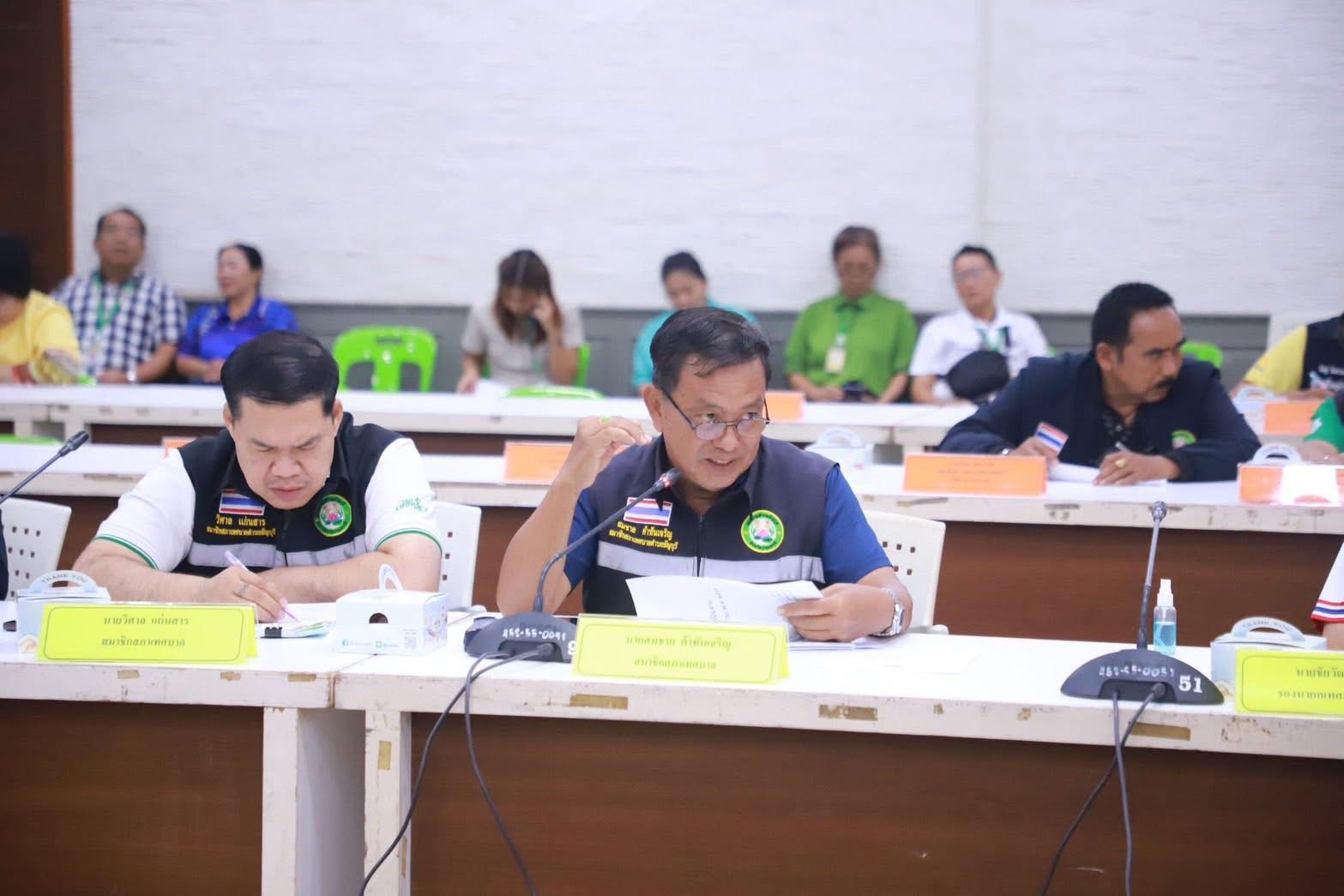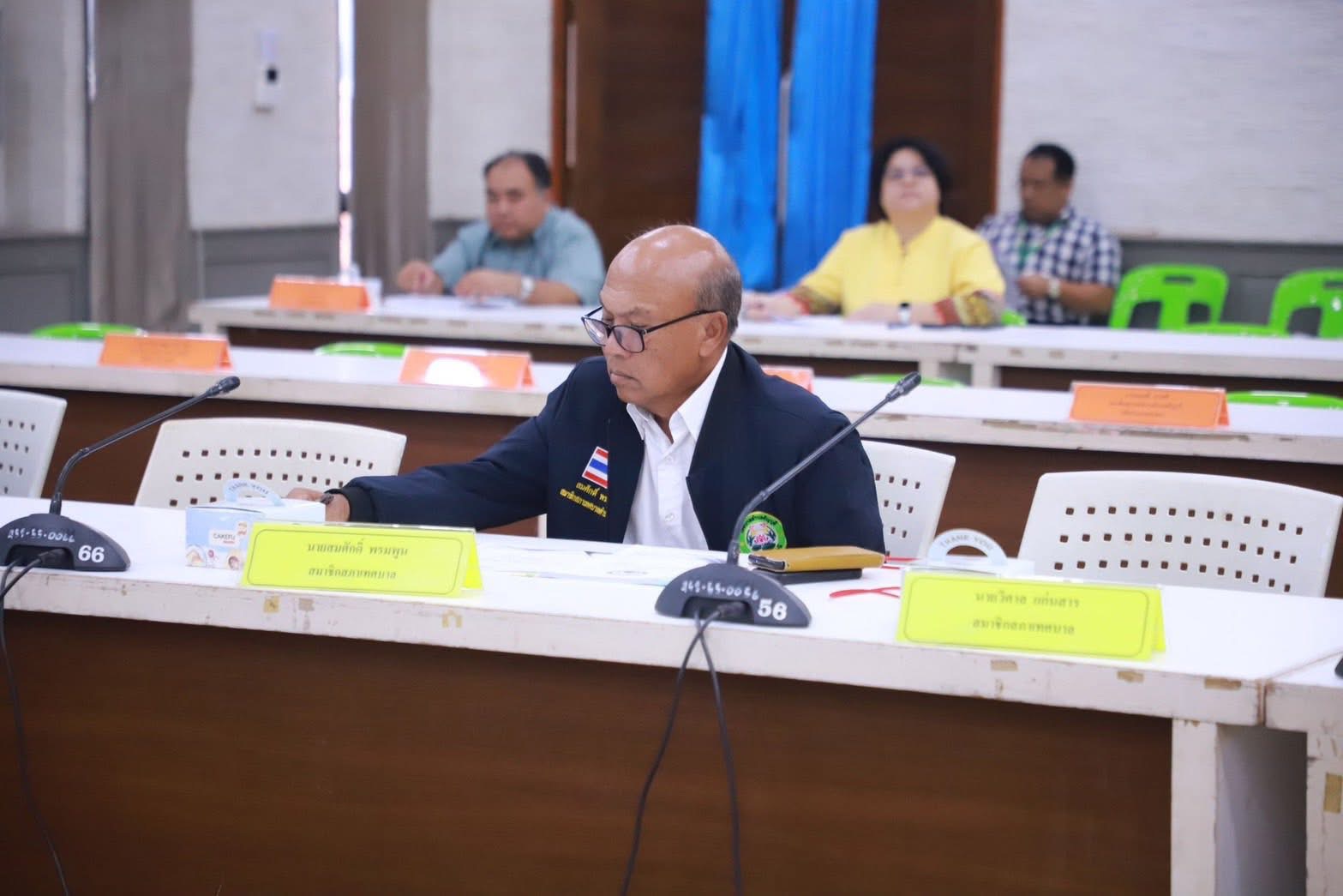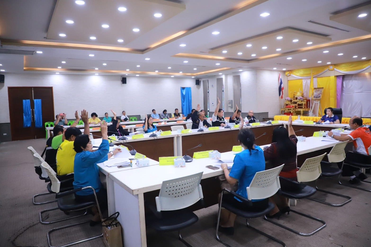 พร้อมด้วยนายชัยวัฒน์ หลีนวรัตน์ รองนายกเทศมนตรีตำบลธัญบุรี สมาชิกสภาเทศบาลตำบลธัญบุรี หัวหน้าส่วนราชการ คณะกรรมการพัฒนาฯ ผู้แทน อปพร.ทต.ธัญบุรี ผู้แทน อสม.ทต.ธัญบุรี หน่วยงานในเขตเทศบาลตำบลธัญบุรี เข้าร่วมประชุม ณ ห้องประชุมเทศบาลตำบลธัญบุรี ชั้น๓