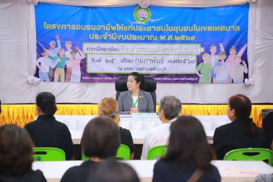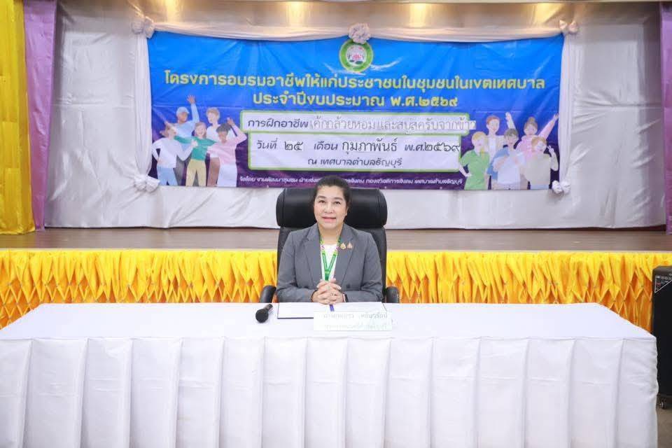 เทศบาลตำบลธัญบุรี นำโดย นางยุพเยาว์ หลีนวรัตน์ (นายกน้ำอ้อย) นายกเทศมนตรีตำบลธัญบุรี เป็นประธานในพิธีเปิดโครงการอบรมอาชีพให้แก่ประชาชนในชุมชนในเขตเทศบาลฯ ประจำปีงบประมาณ พ.ศ.๒๕๖๙ ณ ห้องประชุมเทศบาลตำบลธัญบุรี ชั้น ๓