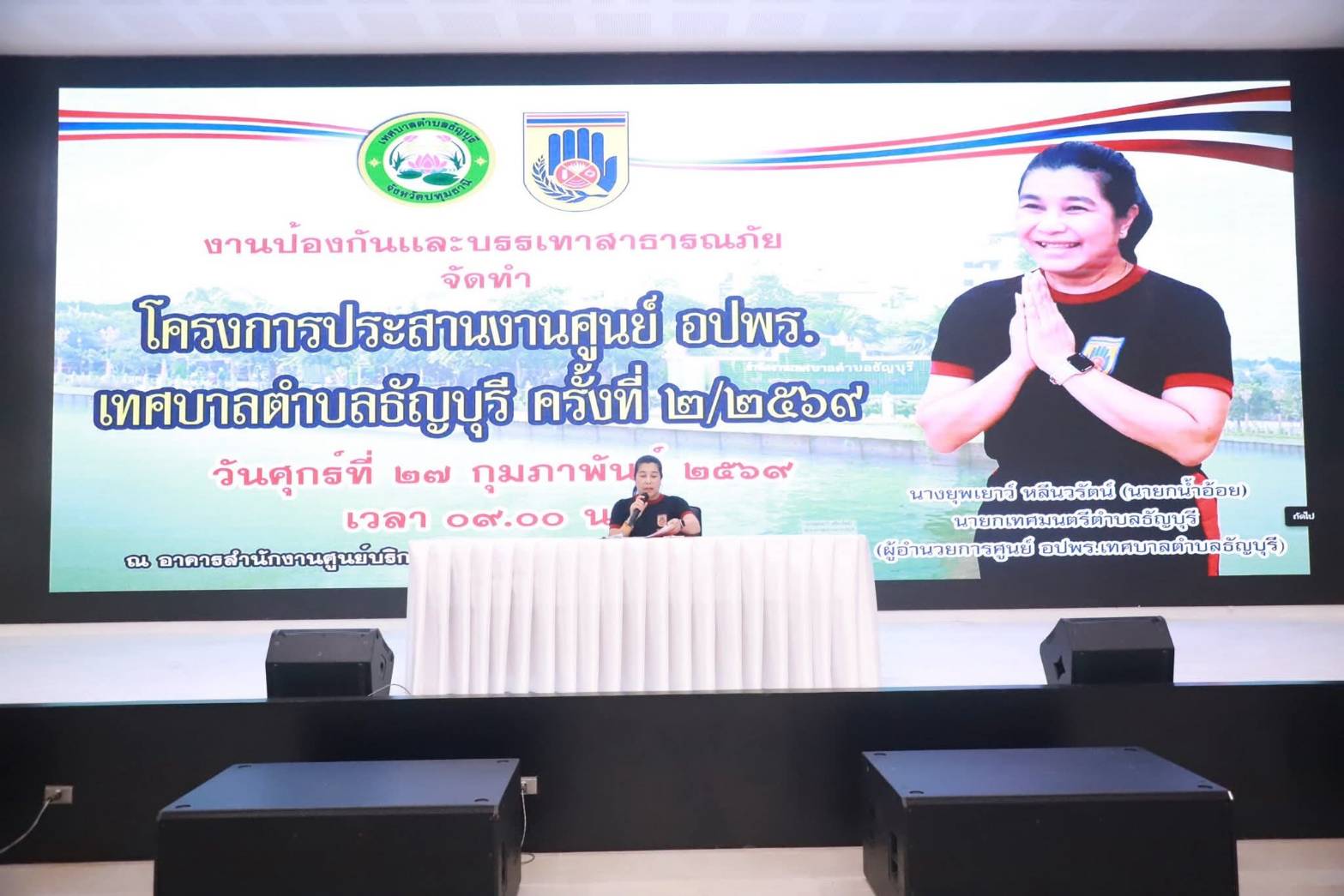 เทศบาลตำบลธัญบุรี นำโดย นางยุพเยาว์ หลีนวรัตน์ (นายกน้ำอ้อย) ผอ.ศูนย์ อปพร.ทต.ธัญบุรี เป็นประธานในโครงการประสานงานศูนย์ อปพร.เทศบาลตำบลธัญบุรี ครั้งที่ ๒/๒๕๖๙ เพื่อมอบนโยบายและแจ้งข้อมูลข่าวสาร ตลอดจนการแจ้งแนวทางการปฏิบัติงานให้มีประสิทธิภาพ