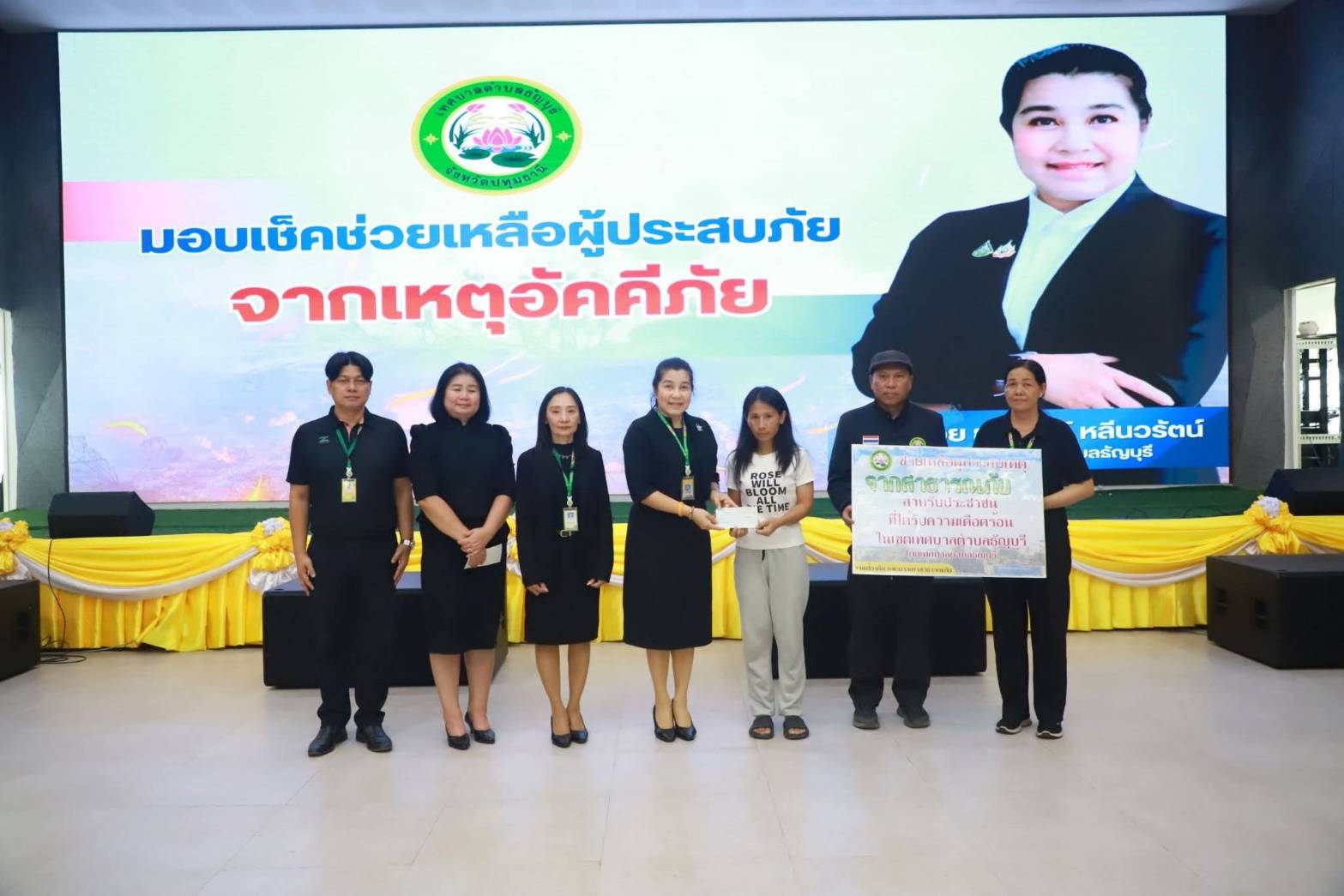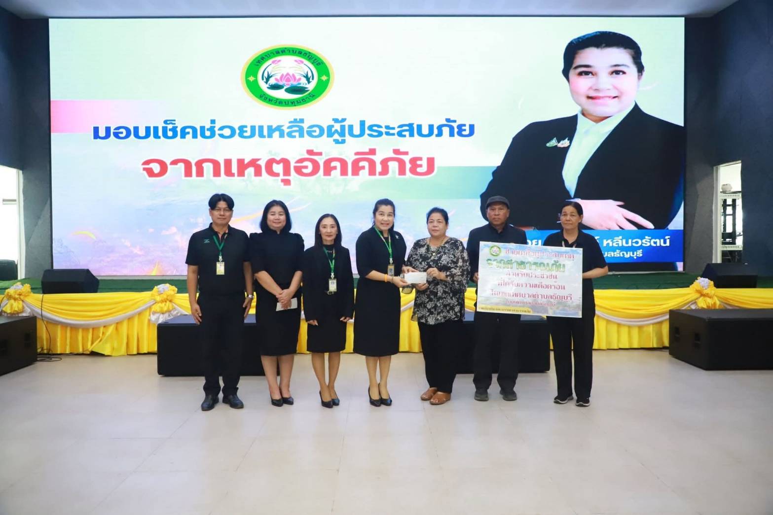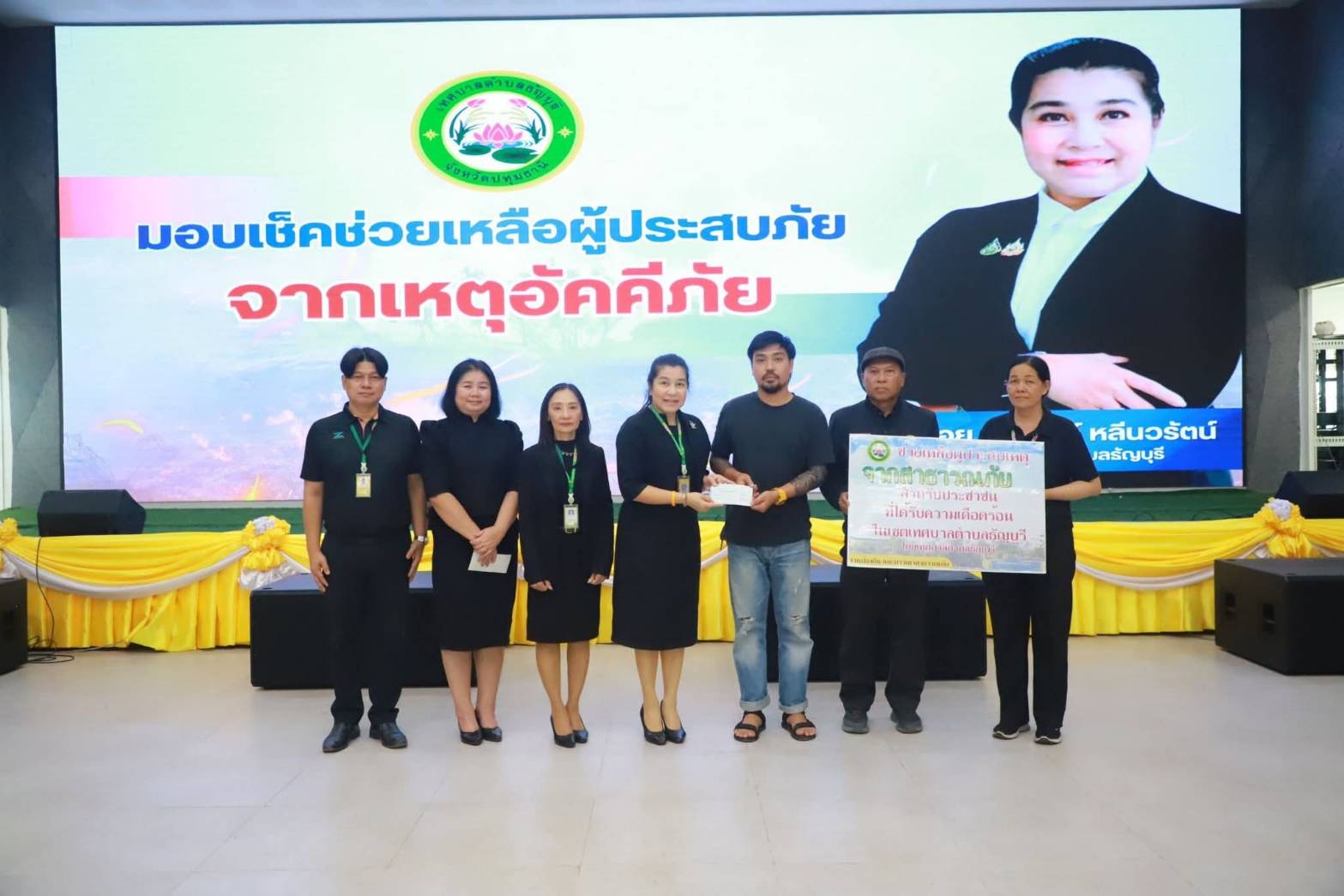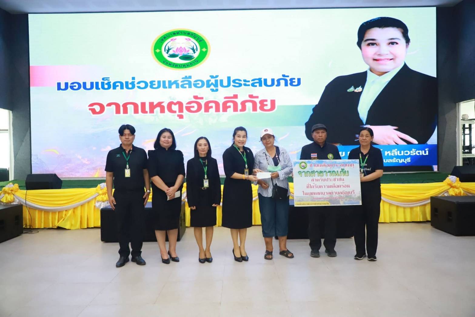 มอบเช็คช่วยเหลือผู้ประสบภัยจากเหตุอัคคีภัย เมื่อวันจันทร์ที่ ๒๓ กุมภาพันธ์ ๒๕๖๙ ช่วงเวลา ๒๐.๓๐ น. ณ ชุมชนคลองหกหมู่ ๓ เกิดความเสียหายไฟไหม้บ้าน จำนวน  ๔ หลัง