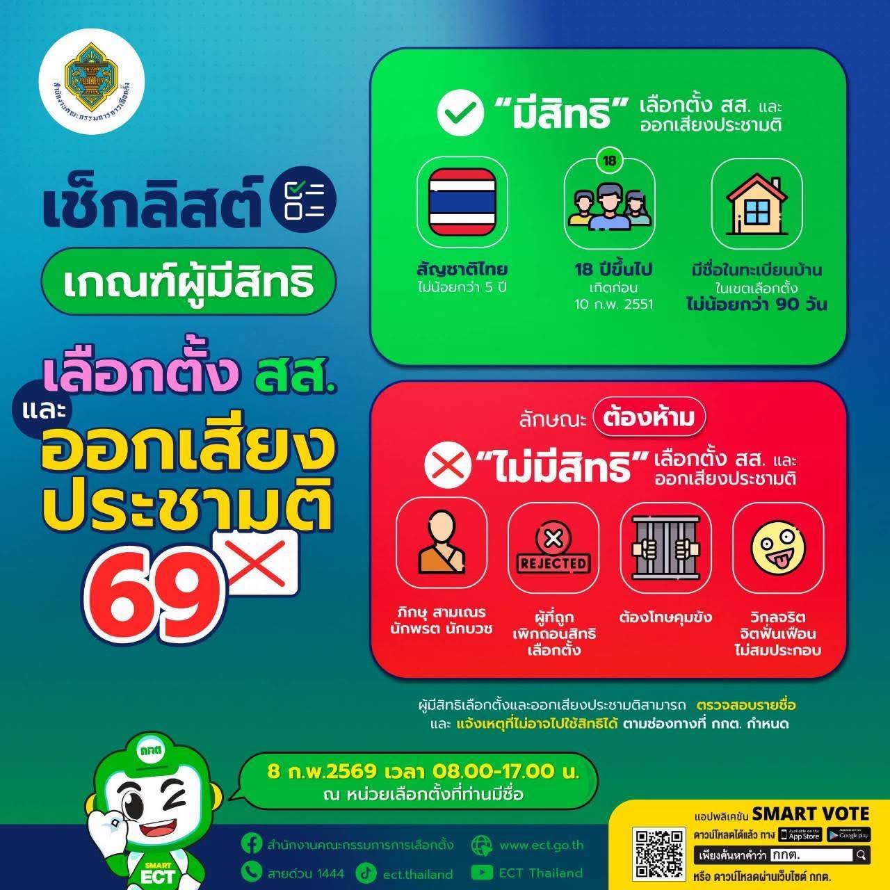 ขอประชาสัมพันธ์ข่าวสาร จากสำนักงานคณะกรรมการการเลือกตั้ง เรื่อง เช็กลิสต์เกณฑ์ผู้มีสิทธิเลือกตั้ง ส.ส.และออกเสียงประชามติ