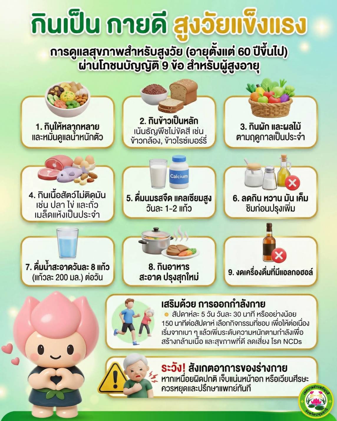 ส่งเสริมสุขภาพผู้สูงวัย ด้วย ๙ ข้อปฏิบัติ "กินเป็น กายดี สูงวัยแข็งแรง" ????????