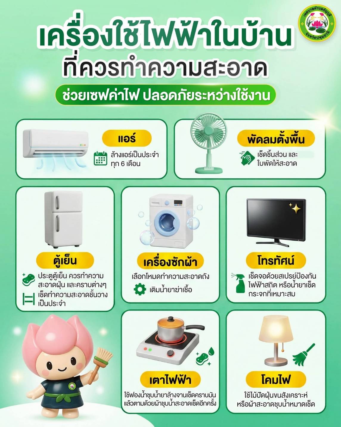#ทำความสะอาดเครื่องใช้ไฟฟ้า #ประหยัดไฟในบ้าน #บ้านปลอดภัย #ไฟฟ้าใช้อย่างรู้ค่า #เทศบาลตำบลธัญบุรี #ธัญบุรีเมืองน่าอยู่