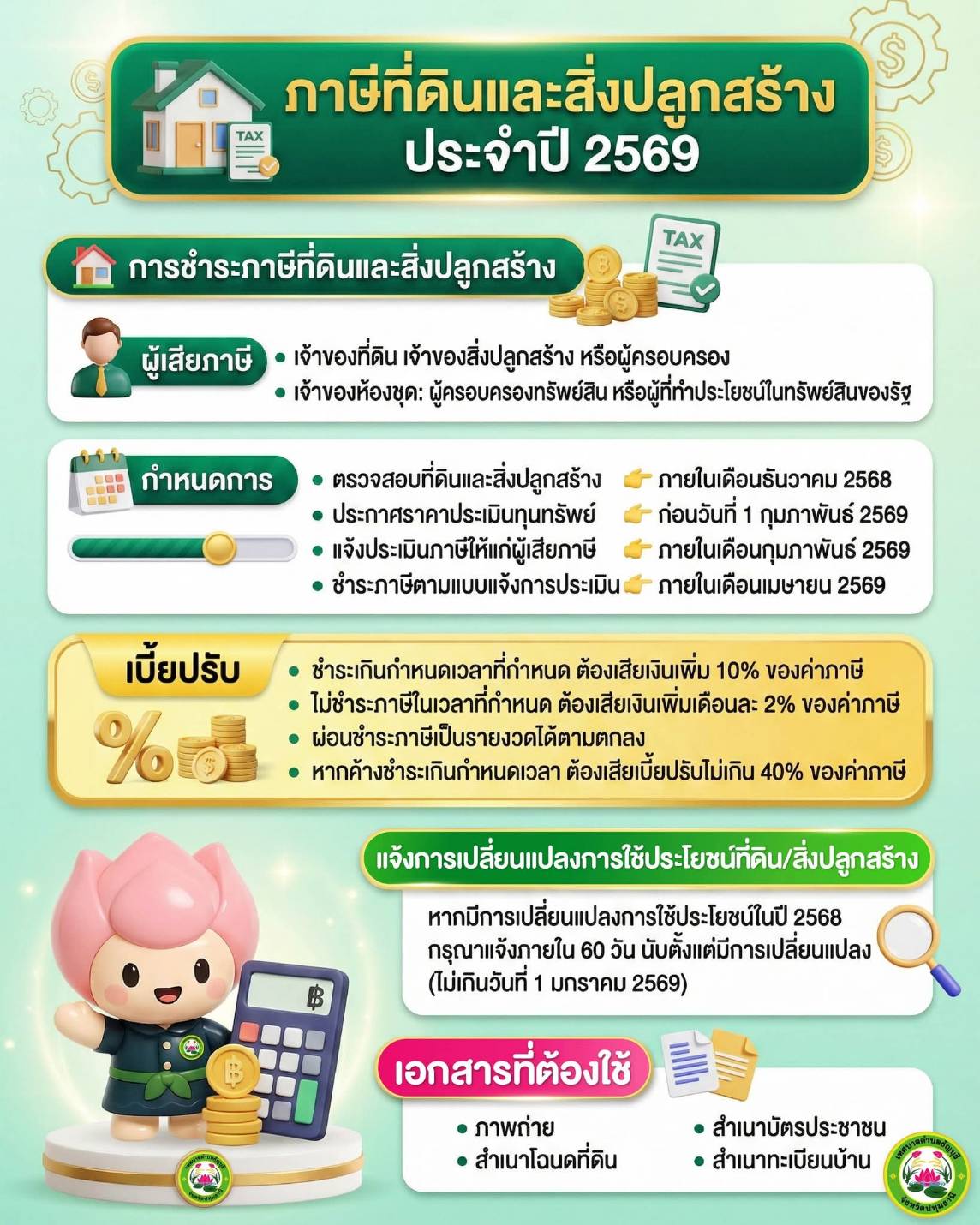 ???? การชำระภาษีที่ดินและสิ่งปลูกสร้าง ประจำปี ๒๕๖๙