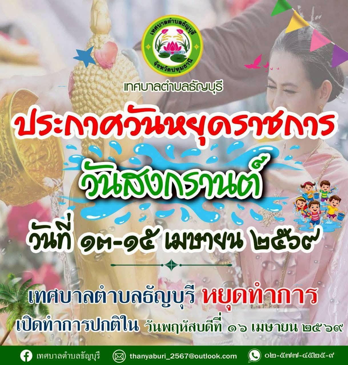 ประกาศวันหยุดราชการ วันสงกรานต์ วันที่ ๑๓-๑๕ เมษายน ๒๕๖๙
