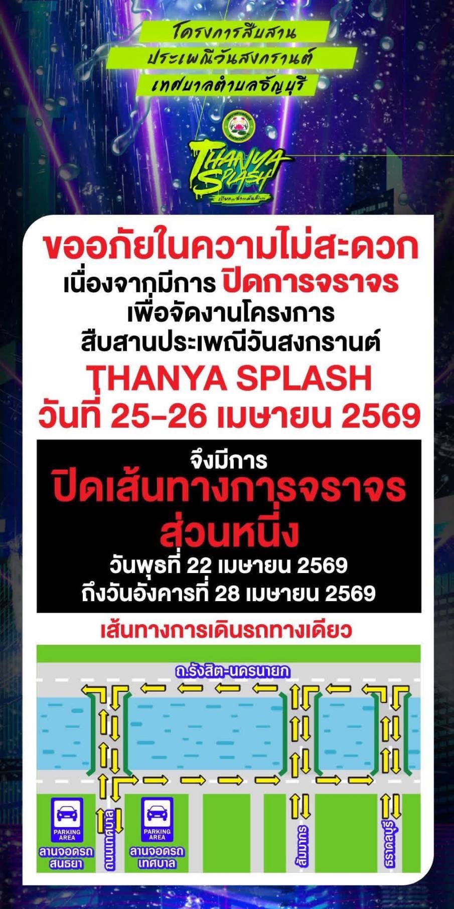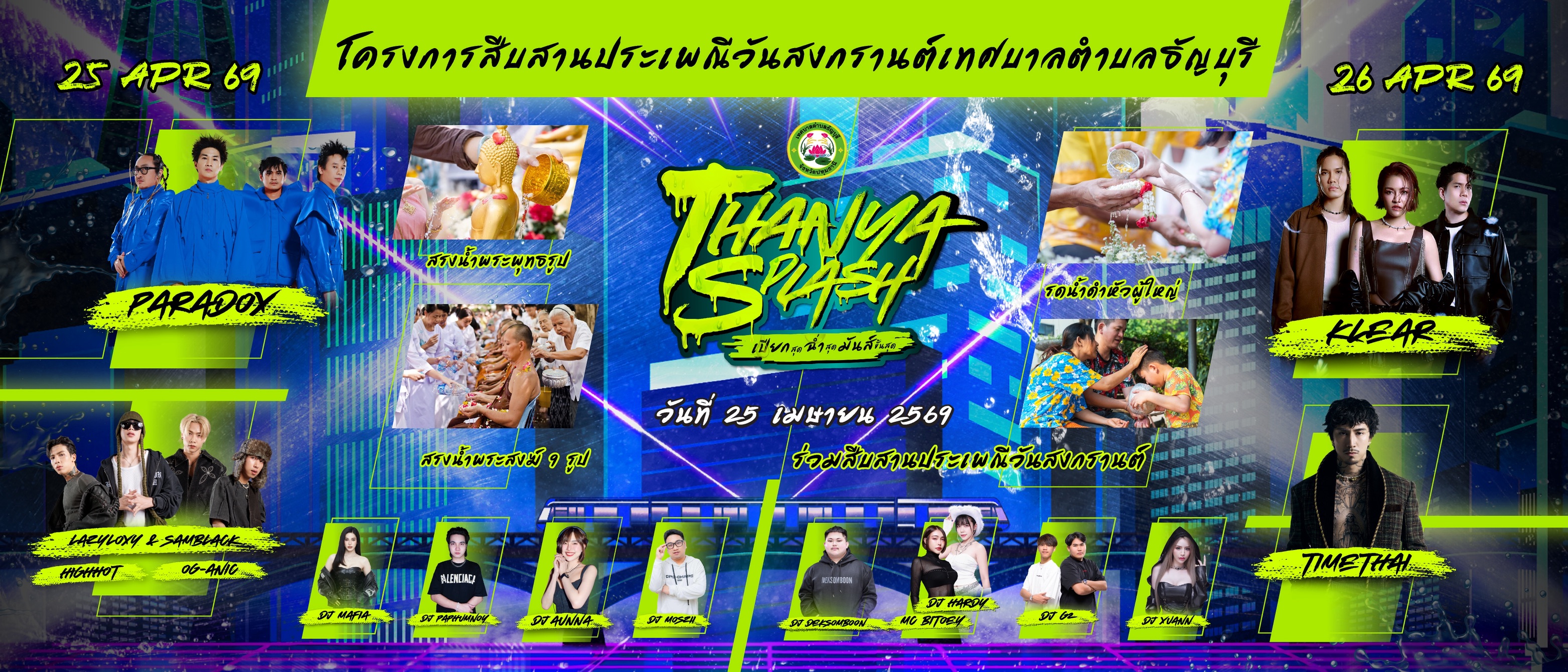 ขอประชาสัมพันธ์การจัดโครงการสืบสานประเพณีวันสงกรานต์ ประจำปี ๒๕๖๙ วันที่ ๒๕-๒๖ เมษายน ๒๕๖๙ ณ บริเวณริมเขื่อนทางเข้าเทศบาลตำบลธัญบุรี