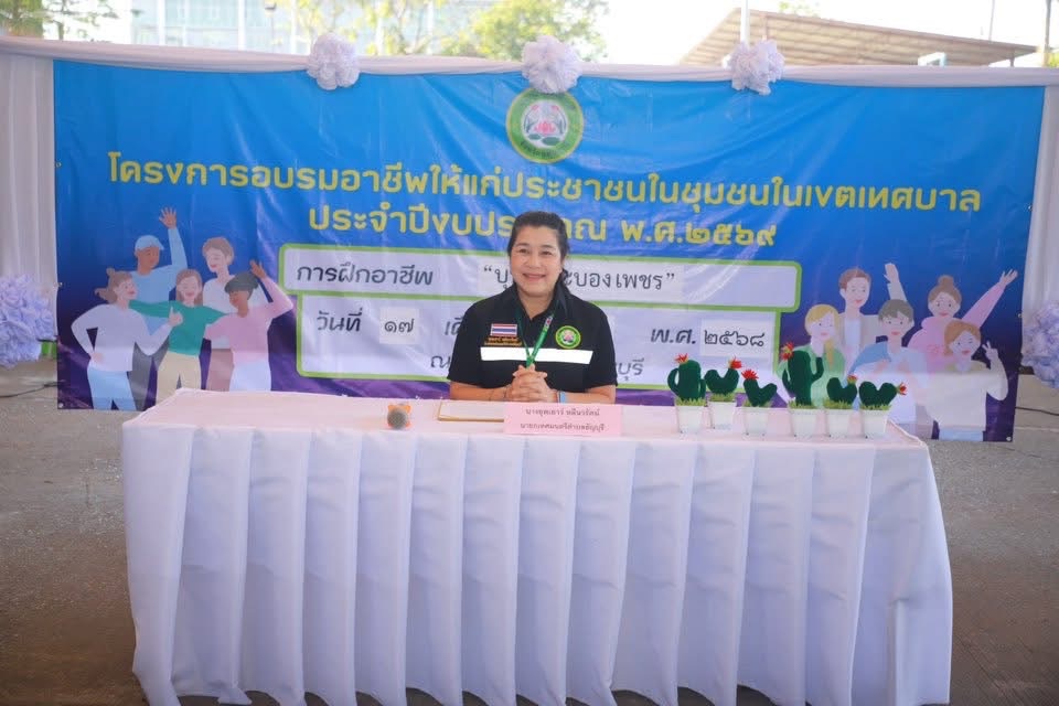 เป็นประธานในพิธีเปิดโครงการอบรมอาชีพให้แก่ประชาชนในชุมชน ในเขตเทศบาล หลักสูตรการทำบุหงา ตะบองเพชร เพื่อส่งเสริมให้ประชาชนมีความรู้และทักษะในการประกอบอาชีพ และเสริมสร้างรายได้เสริมเพิ่มขึ้นลดรายจ่าย ให้มีความรู้และทักษะด้านอาชีพ ได้เรียนรู้ รู้จักมีระบบการบริหารจัดการที่ดีกระตุ้นให้ประชาชนใช้เวลาว่างให้เป็นประโยชน์ต่อตนเองและครอบครัว