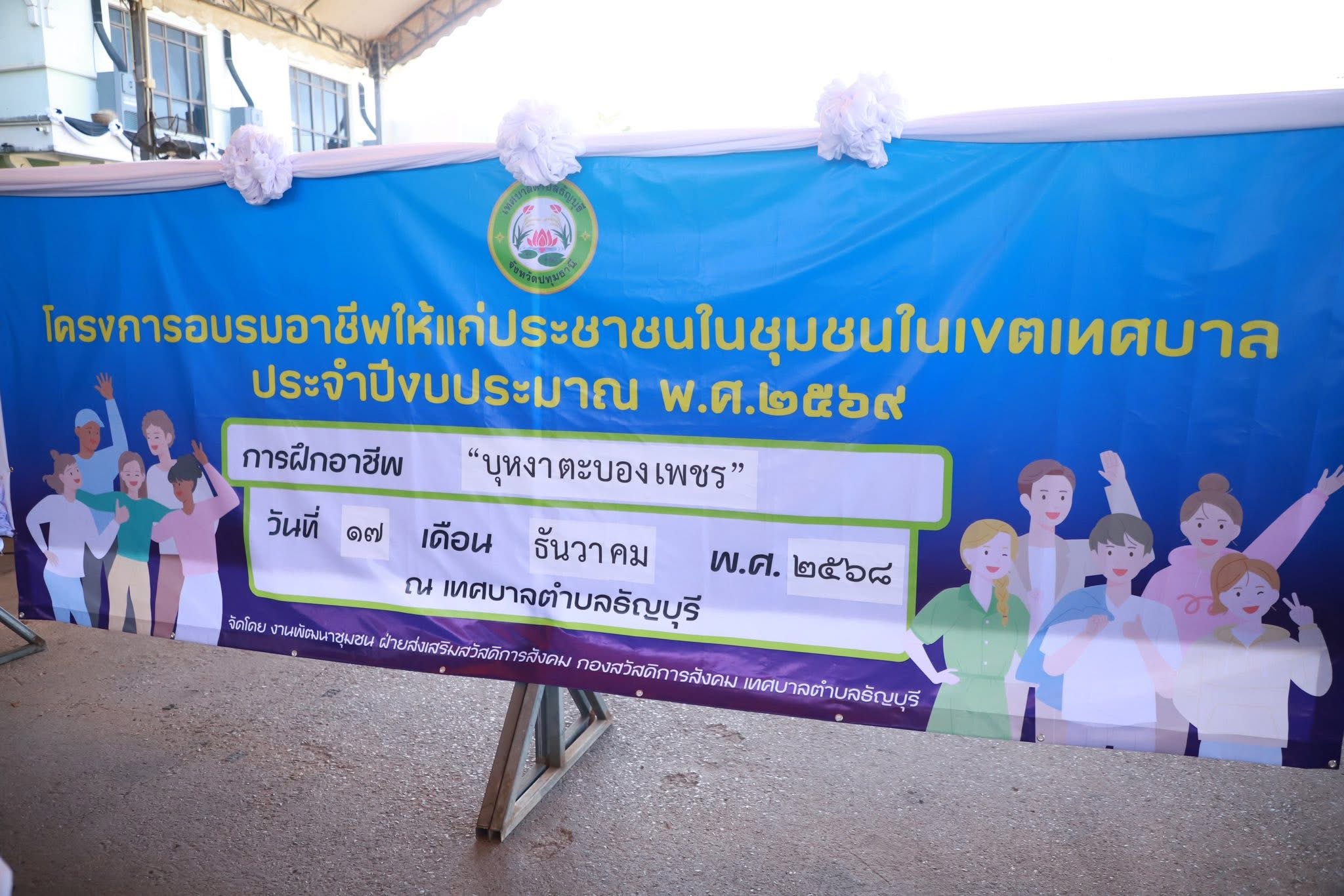 เทศบาลตำบลธัญบุรี นำโดย นางยุพเยาว์ หลีนวรัตน์ (นายกน้ำอ้อย) นายกเทศมนตรีตำบลธัญบุรี เป็นประธานในพิธีเปิดโครงการอบรมอาชีพให้แก่ประชาชนในชุมชน ในเขตเทศบาล ณ โดมหน้าสำนักงานเทศบาลตำบลธัญบุรี