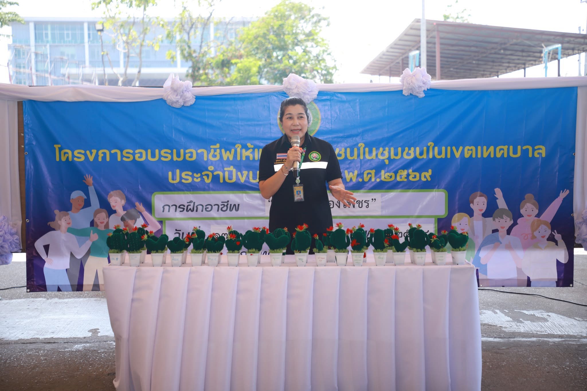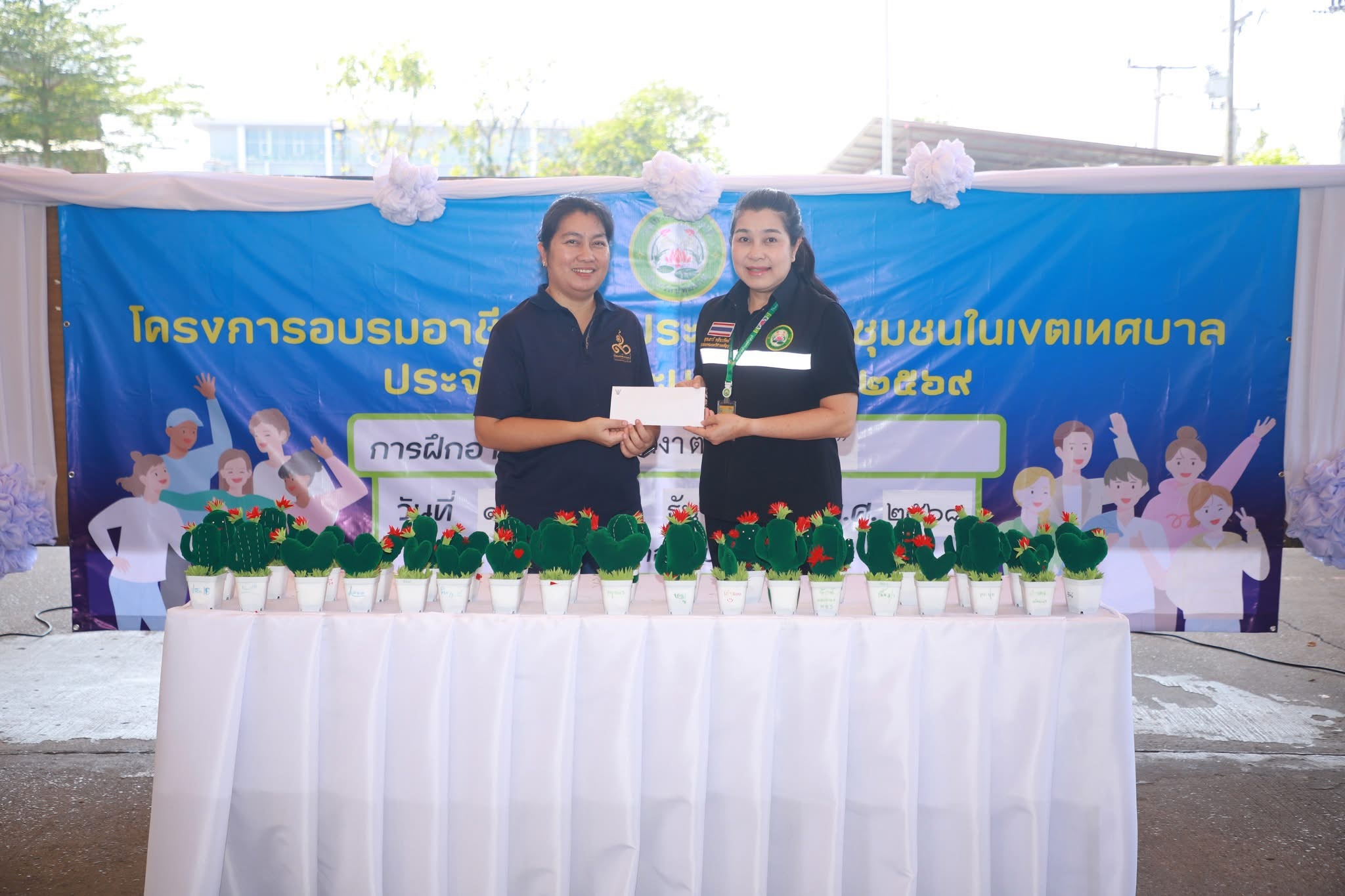 เทศบาลตำบลธัญบุรี นำโดย นางยุพเยาว์ หลีนวรัตน์ (นายกน้ำอ้อย) นายกเทศมนตรีตำบลธัญบุรี มอบวุฒิบัตร ให้กับประชาชนที่เข้าร่วมการฝึกอบรมหลักสูตรงานประดิษฐ์ “การทำบุหงาตะบองเพชร” ณ โดมหน้าสำนักงานเทศบาลตำบลธัญบุรี