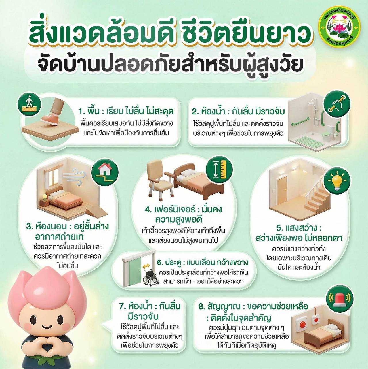 #สิ่งแวดล้อมดีชีวิตยืนยาว #จัดบ้านปลอดภัยเพื่อผู้สูงวัย #ใส่ใจผู้สูงอายุ #บ้านปลอดภัย #สุขภาพผู้สูงอายุ #กองสาธารณสุขและสิ่งแวดล้อม #เทศบาลตำบลธัญบุรี #ธัญบุรีเมืองน่าอยู่